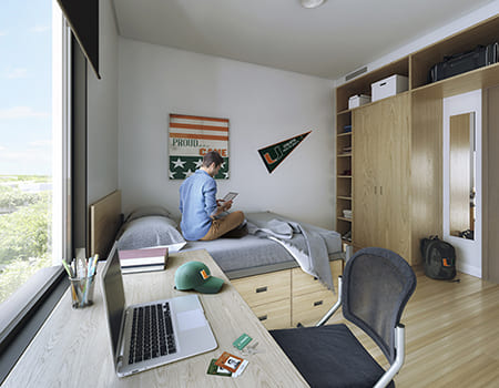 La University of Miami si trova nel cuore della città . Sorge proprio nel centro del quartiere culturale e storico di Coral Gables. Gli studenti alloggeranno all’interno del campus in una residenza universitaria creata su misura per le esigenze di giovani. La sistemazione è in stanze doppie, dotate di bagno e doccia privati e caratterizzate da uno standard molto elevato. All’interno del campus troviamo tutte le migliori infrastrutture dedicate all’apprendimento e alla vita universitaria ed aeree per lo sport e per il tempo libero, dove rilassarsi e socializzare.